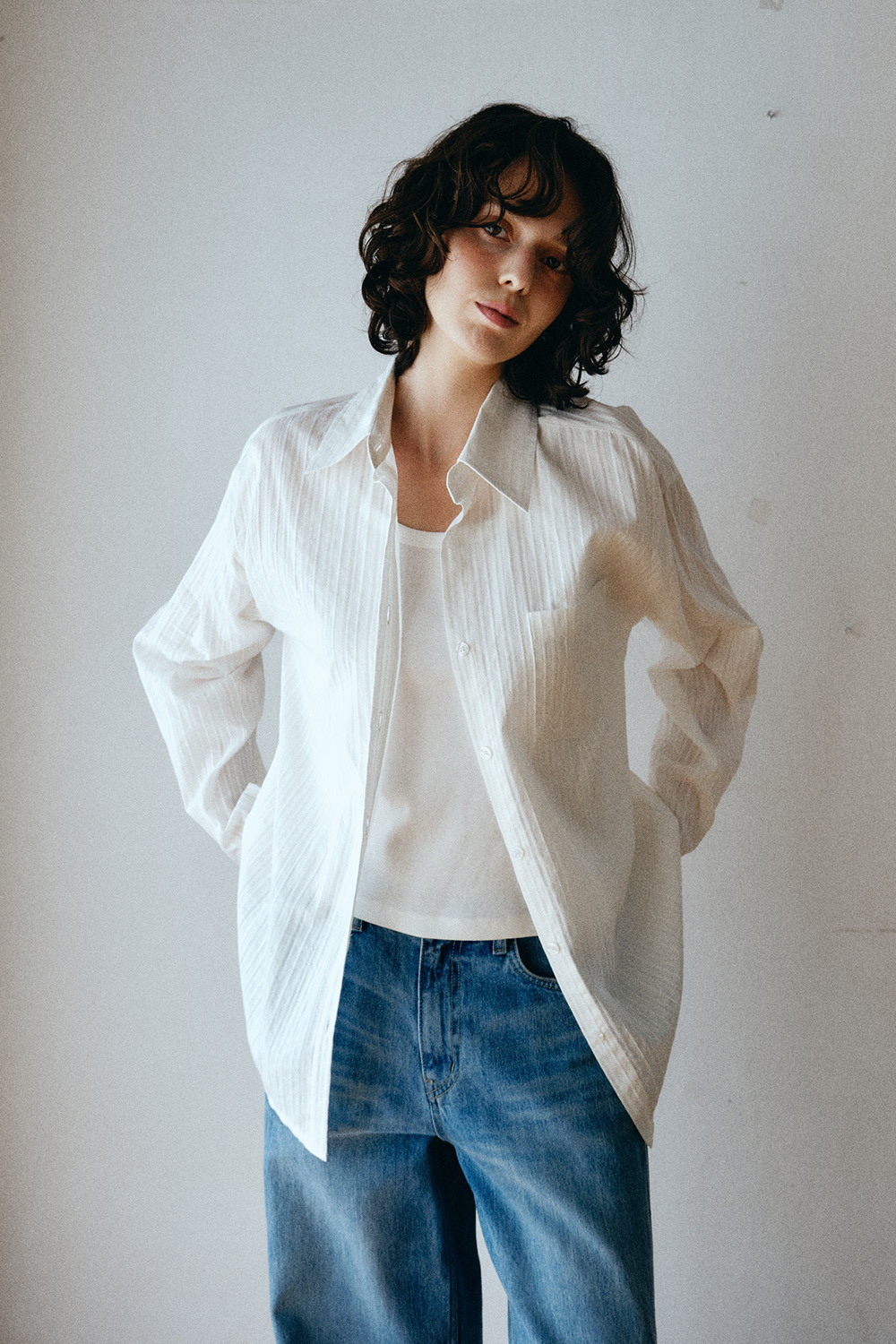 릴렉스드 시어 코튼 셔츠_아이보리