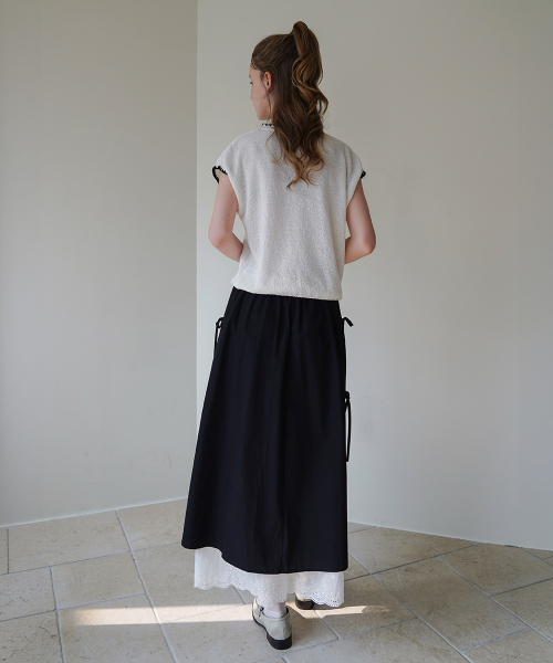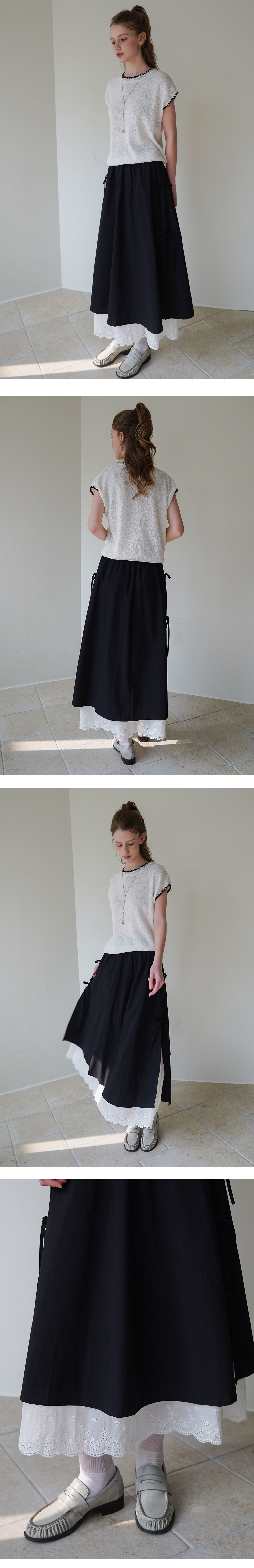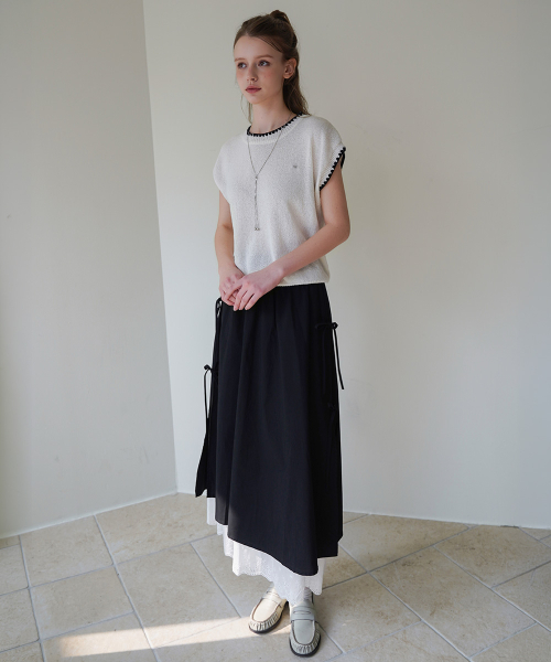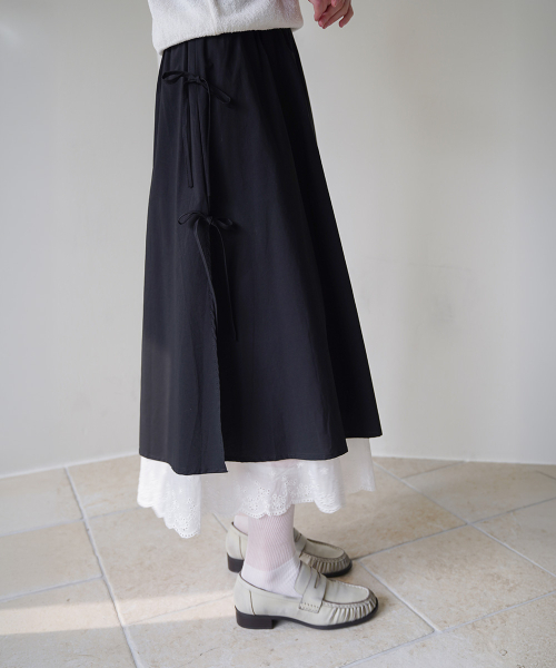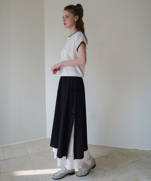 [리본슬릿/데일리] 보우 슬릿 맥시 스커트 (BLACK)