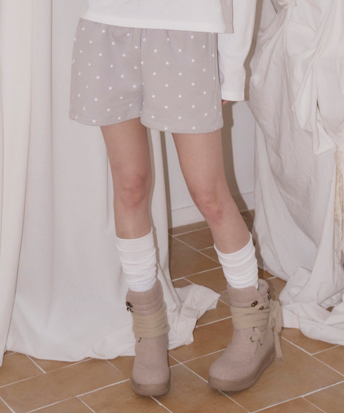 STAR HEART LACE APPLIQUE SHORTS GRAY