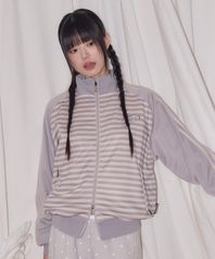 STRIPE RAGLAN JERSEY TRACK JACKET GRAYISH BEIGE