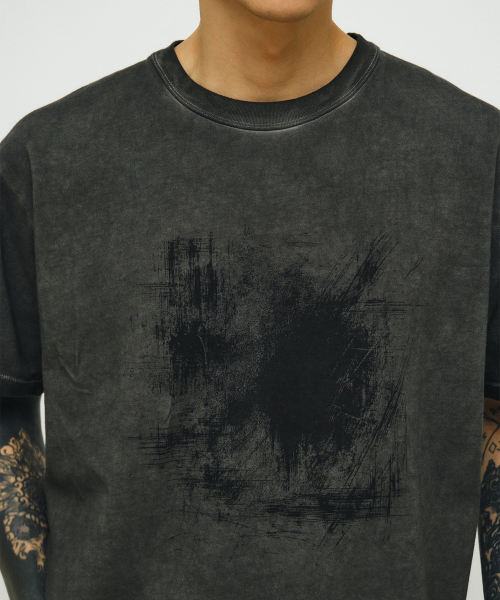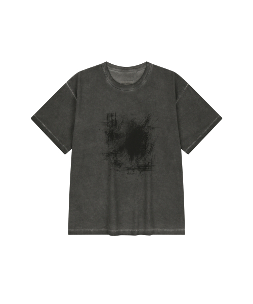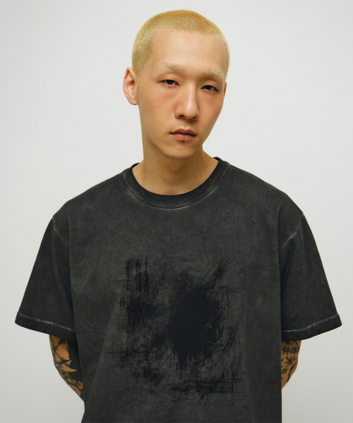 460G 크롭 컷 헤비 피그먼트 티셔츠-워시드 블랙-