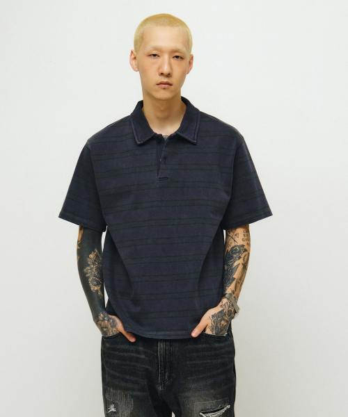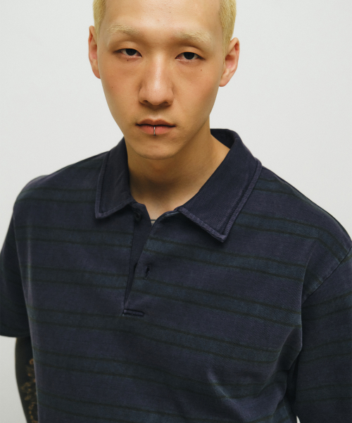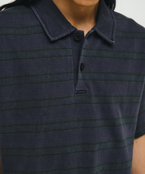 Vtg Dyed Stripe 1/2 Polo Shirt (vtg purple)
