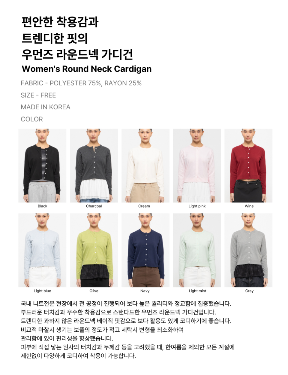 우먼즈 라운드 넥 가디건[10 COLOR]