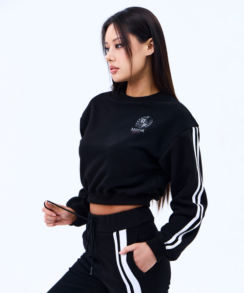 아이비리그 트랙 라인 크롭 스웨트셔츠 (BLACK)
