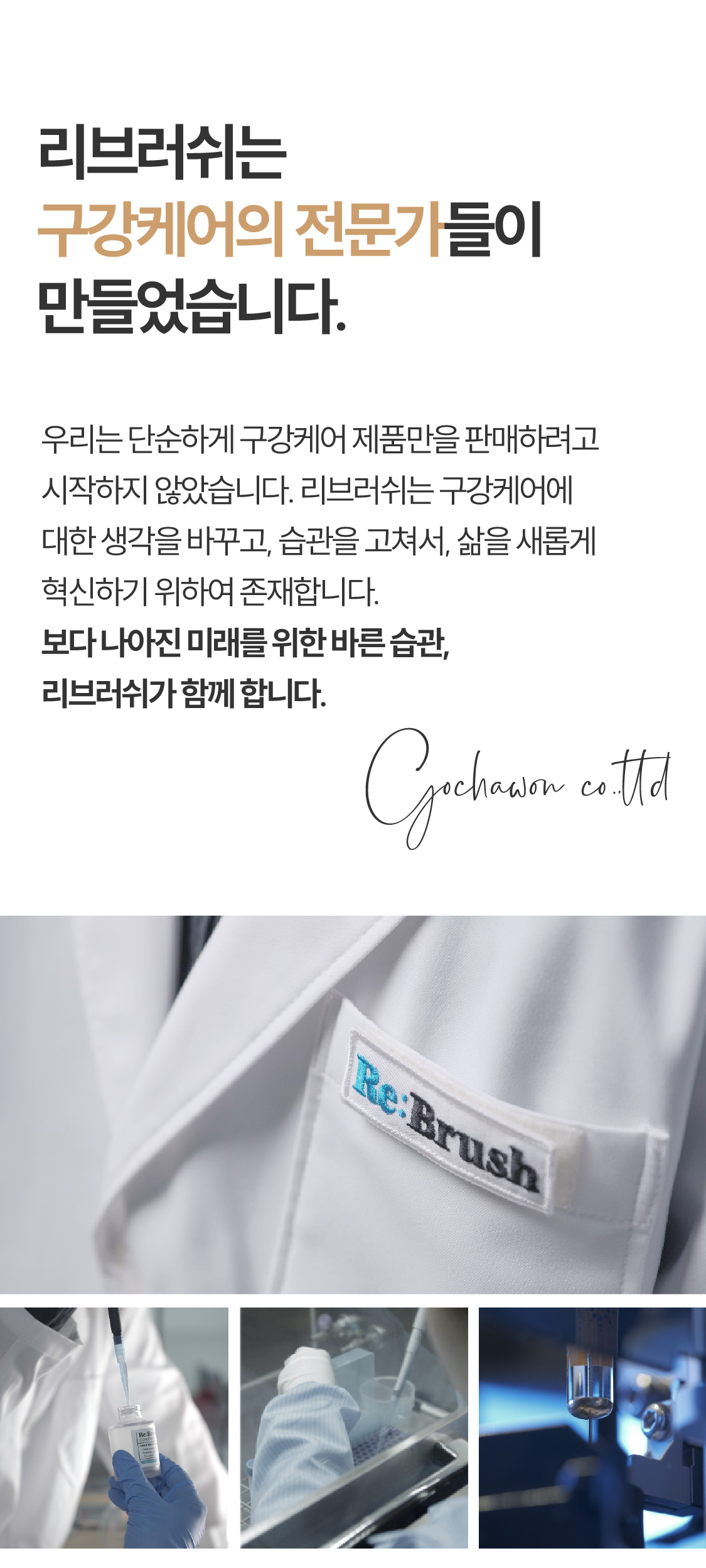 리브러쉬(REBRUSH)는 치과의사의 전문성을 바탕으로 구강케어의 핵심에 집중한 제품과 서비스로 건강한 구강관리 습관 형성을 돕는 프리미엄 구강케어 브랜드입니다.