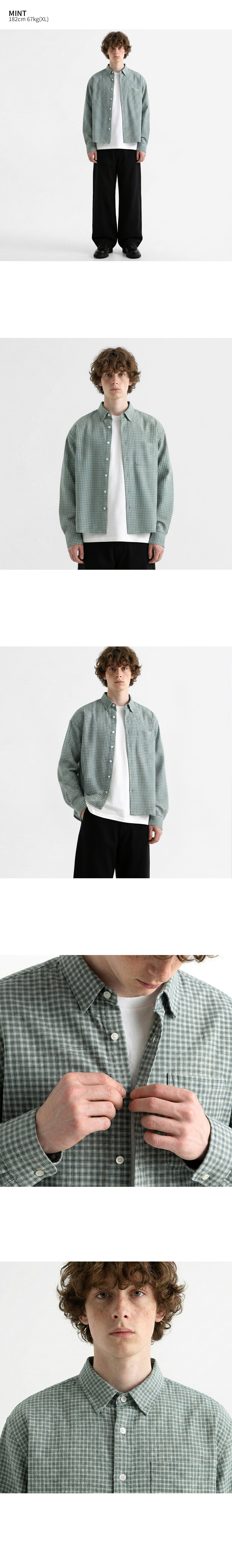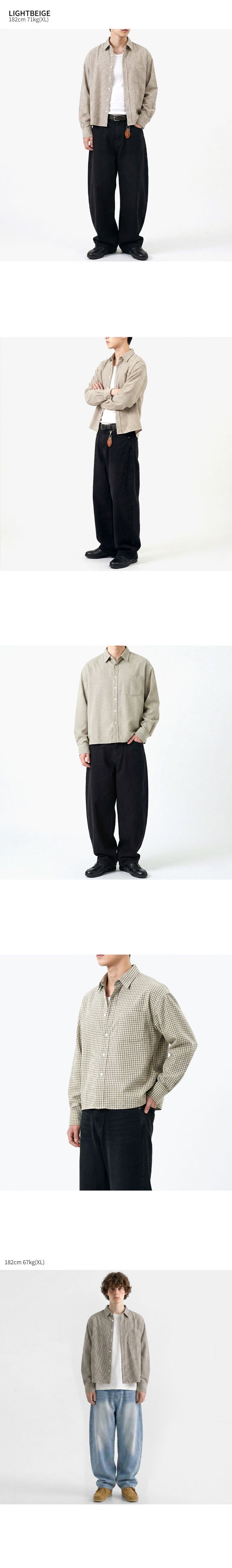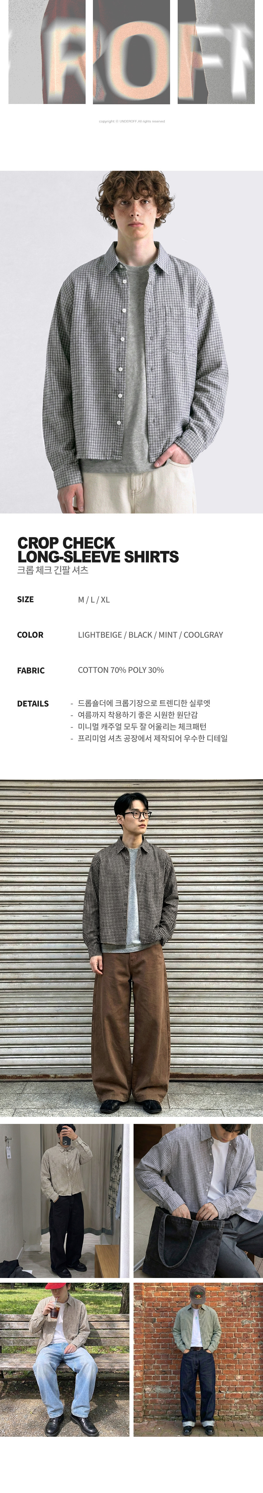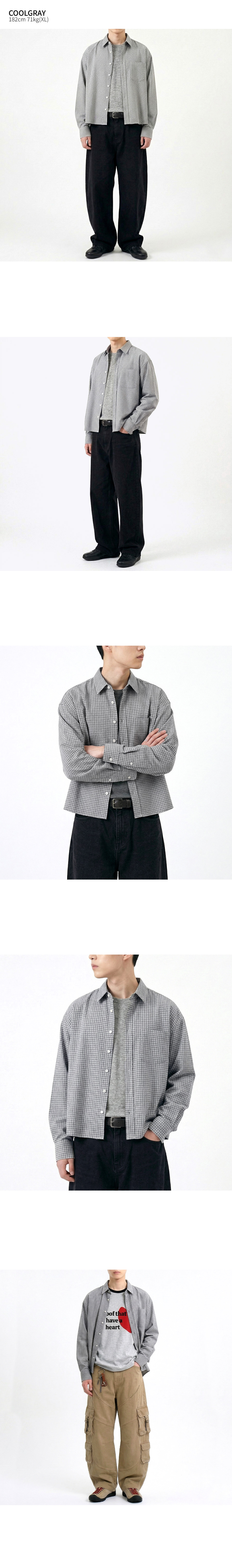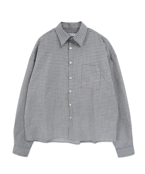 크롭 체크 긴팔 셔츠 쿨그레이