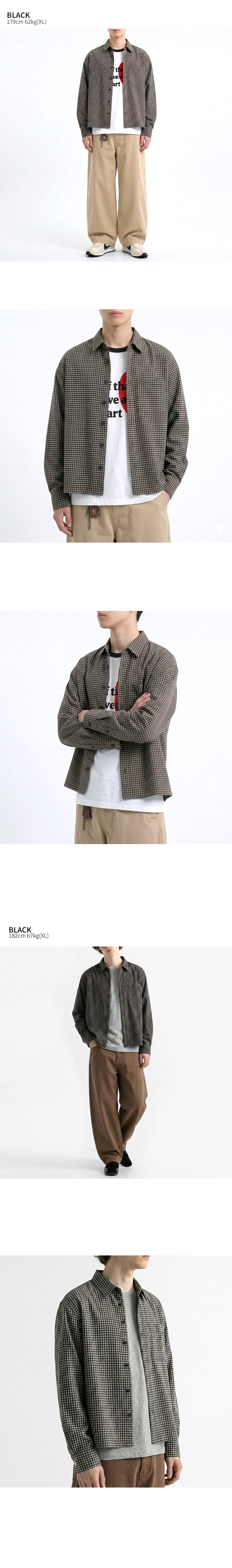 크롭 체크 긴팔 셔츠 블랙