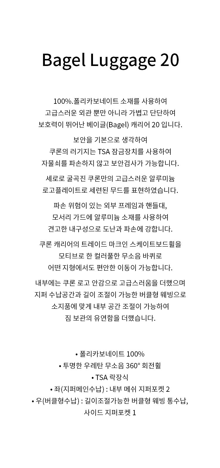 * 소재:폴리카보네이트100% 우레탄(바퀴)/ 폴리(안감)