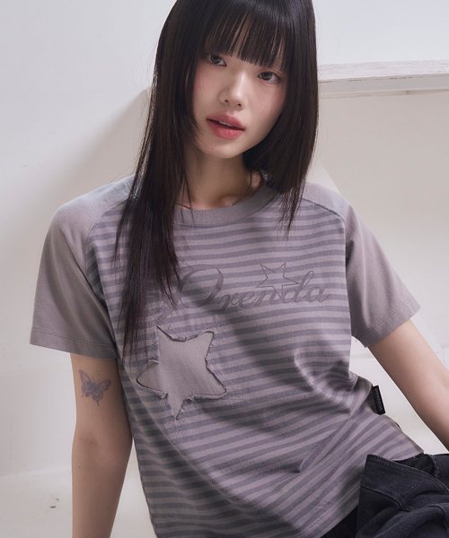 STRIPE STAR LOGO RAGLAN CREWNECK TEE CHARCOAL