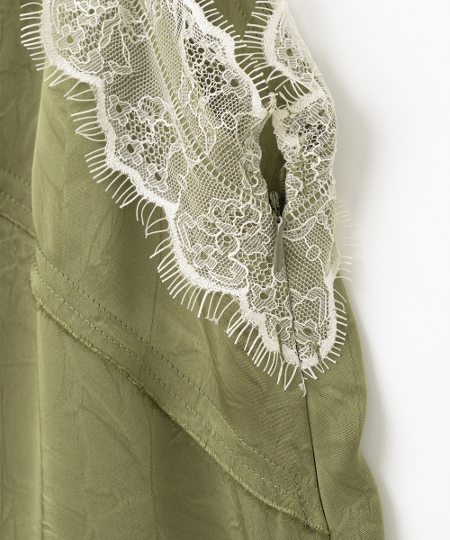 체크 배색 프릴 포인트 볼륨 플레어 캉캉 미디 스커트 [퍼플]