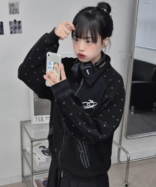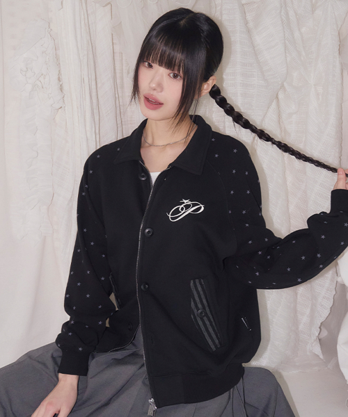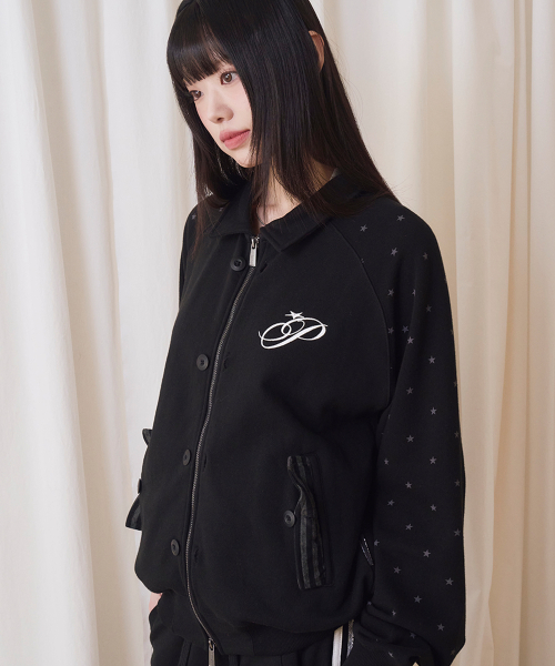 BUTTON STAR DOT SWEAT ZIP UP JAKET BLACK