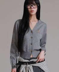 소프트 에센셜 브이넥 니트 가디건_그레이