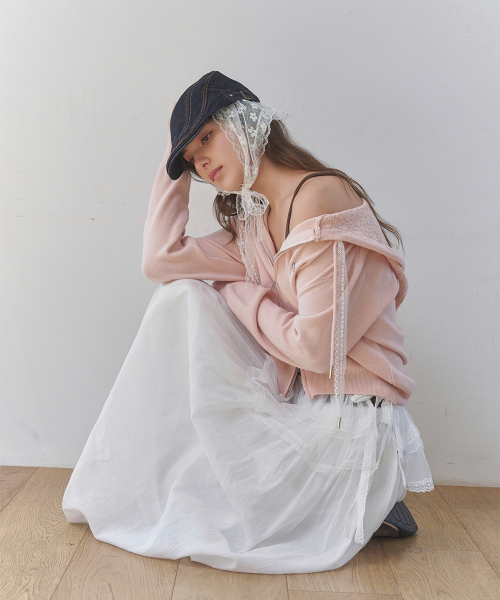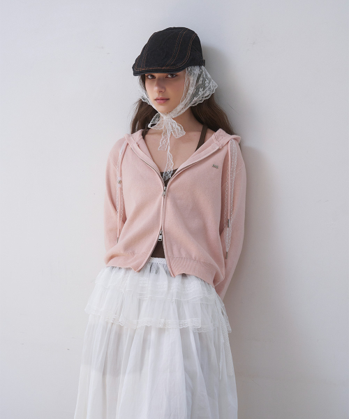 [레이스스트링/여리핏] 레이스 스트링 니트 가디건(PINK)