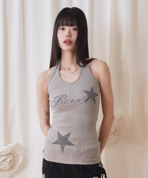 STAR APPLIQUE HALTER NECK SLEEVE LESS GRAY