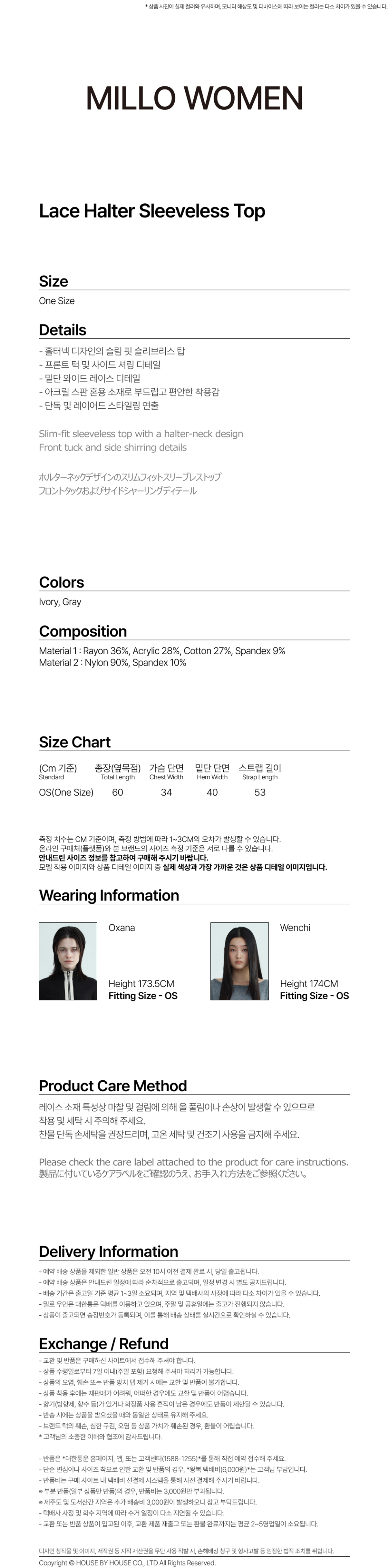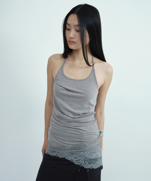 레이스 홀터 슬리브리스 탑 [그레이]