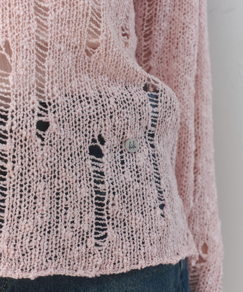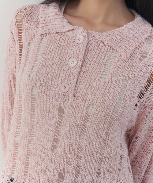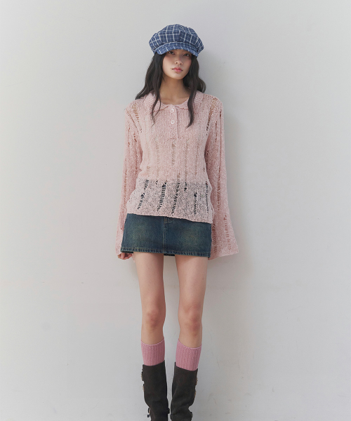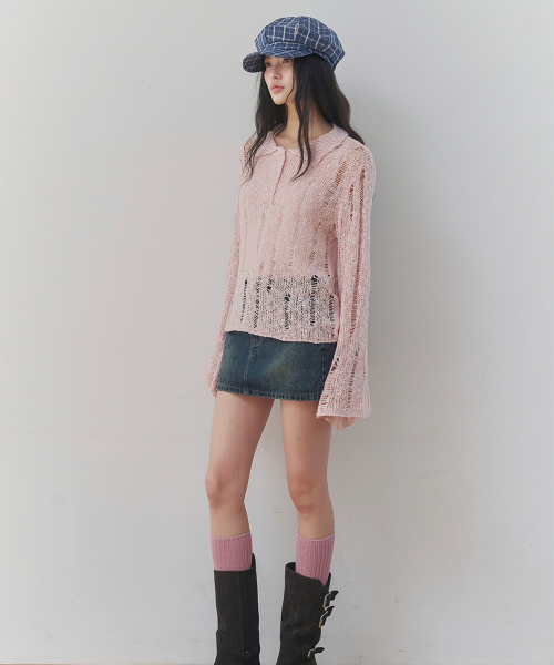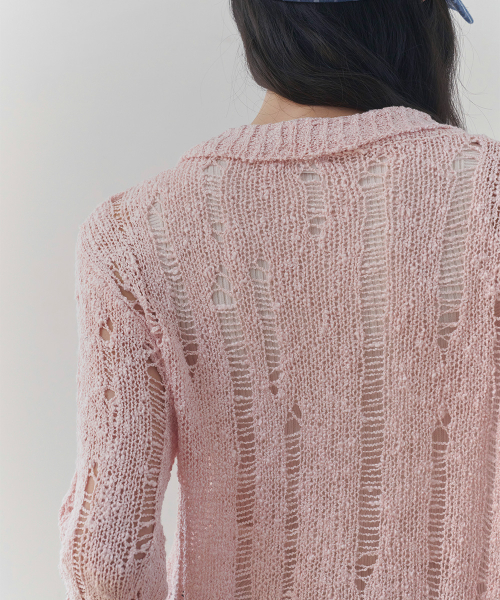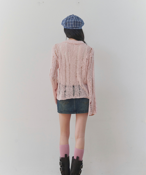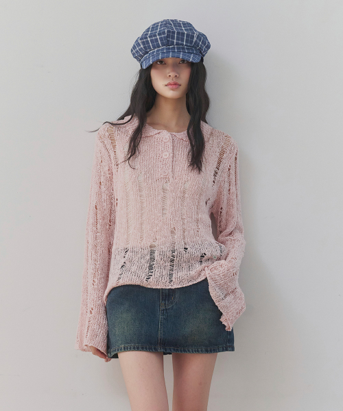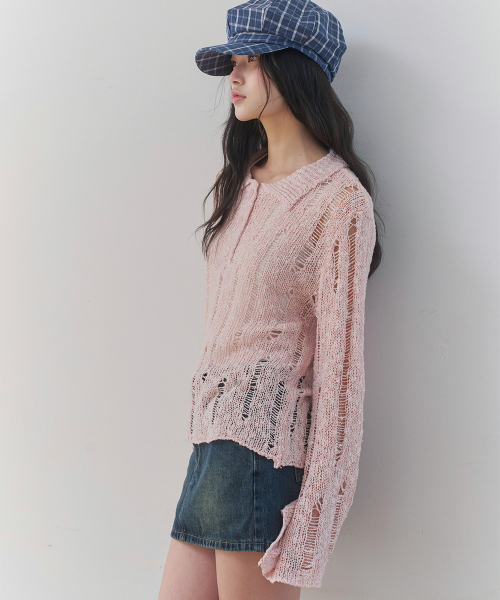 [레이어드/데일리] 디스트로이드 시어 카라 니트 (PINK)