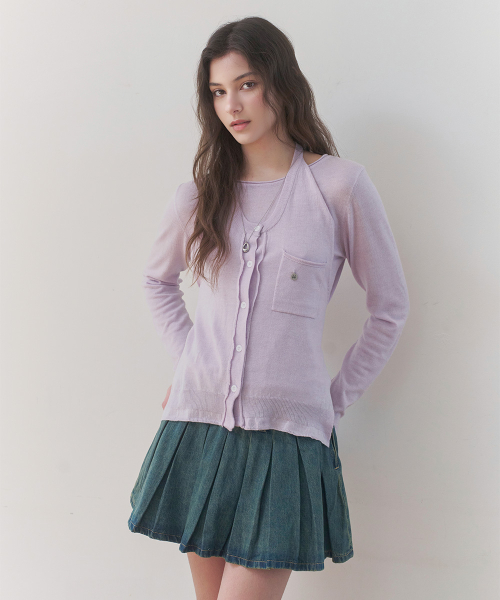 [홀터넥/레이어드] 홀터넥 레이어드 니트 탑 (LAVENDER)