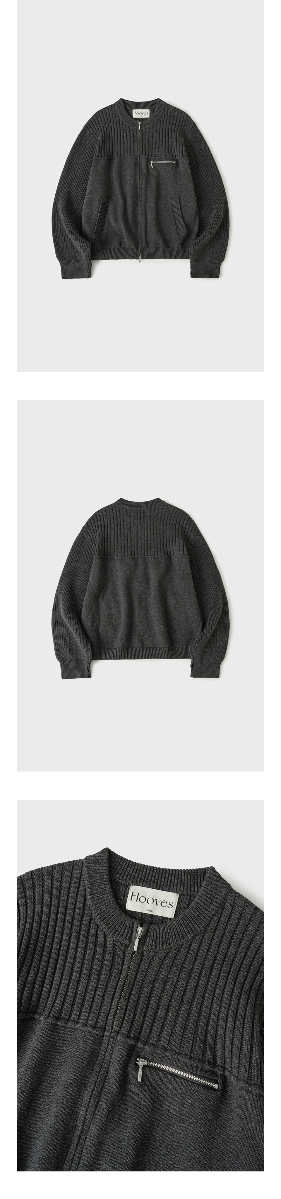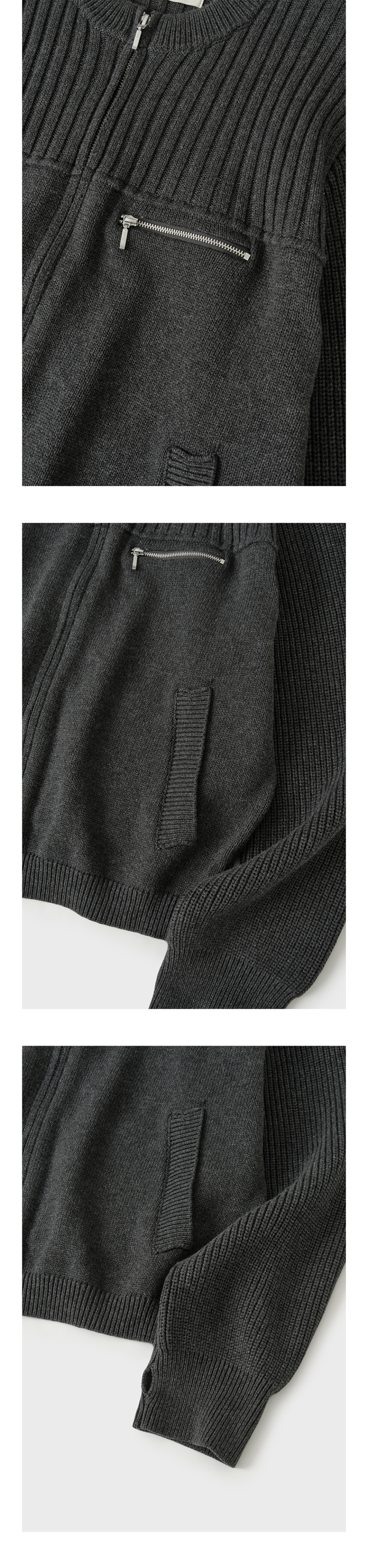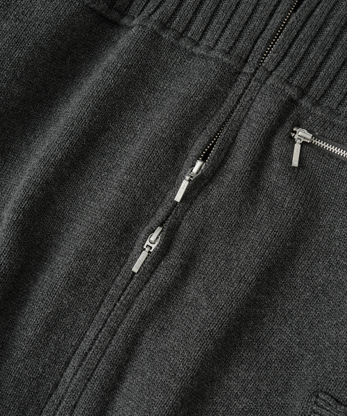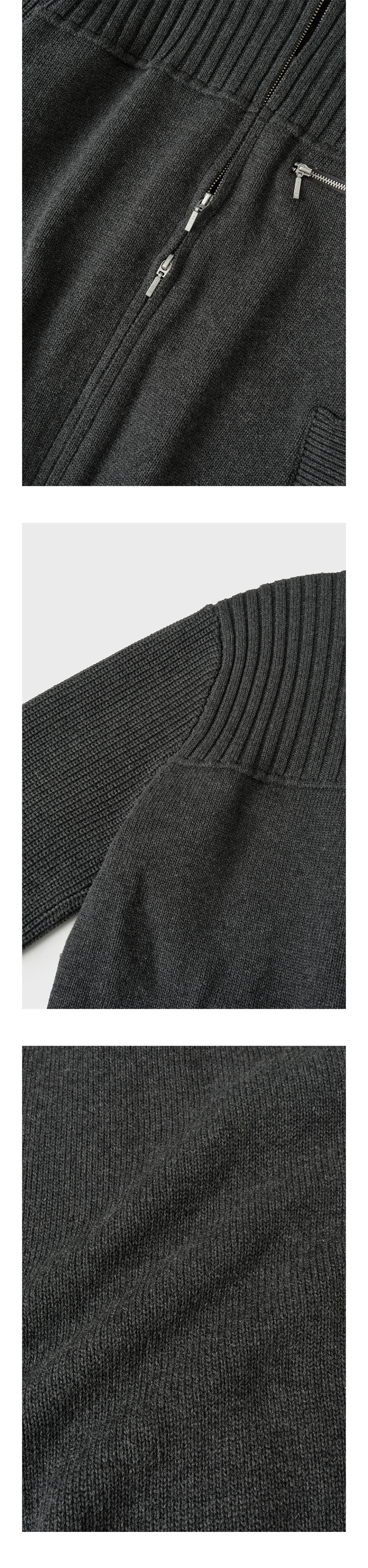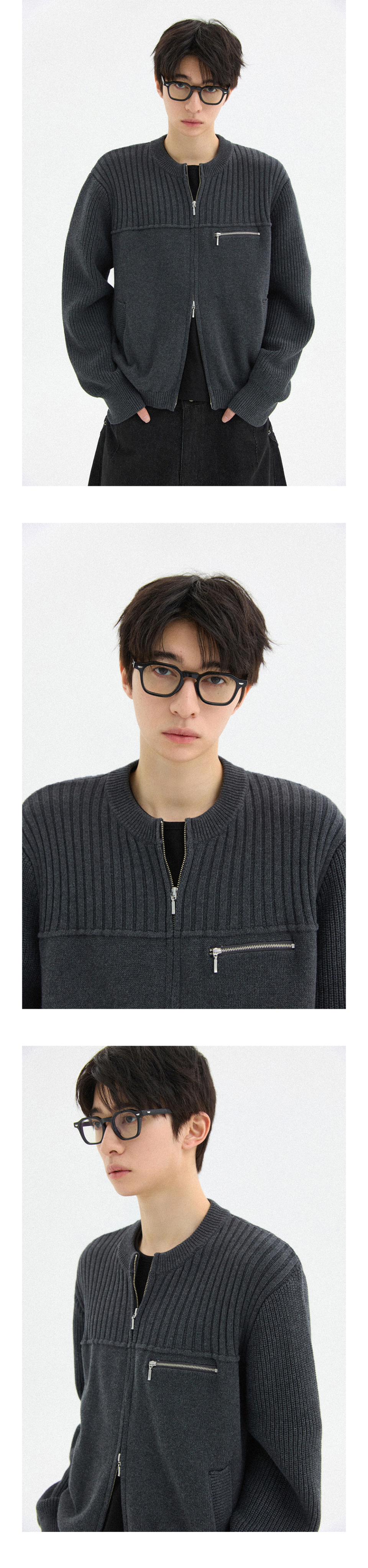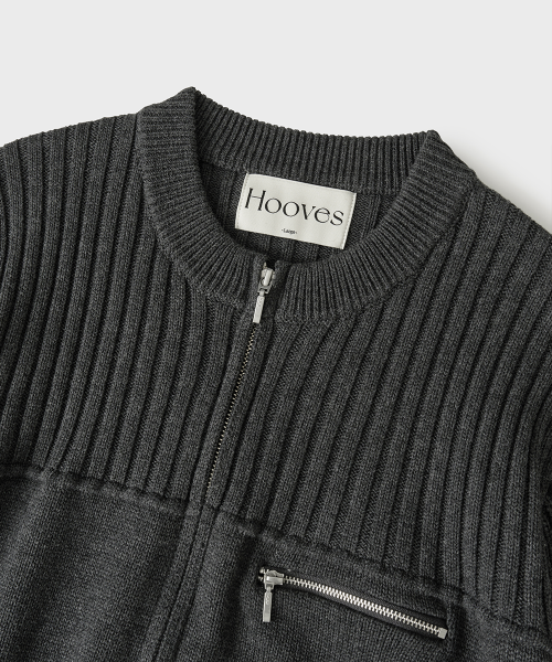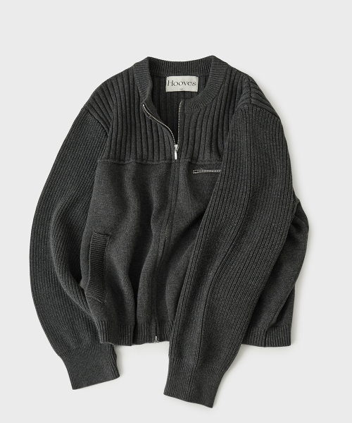 멀티 리브드 집업 니트[차콜]