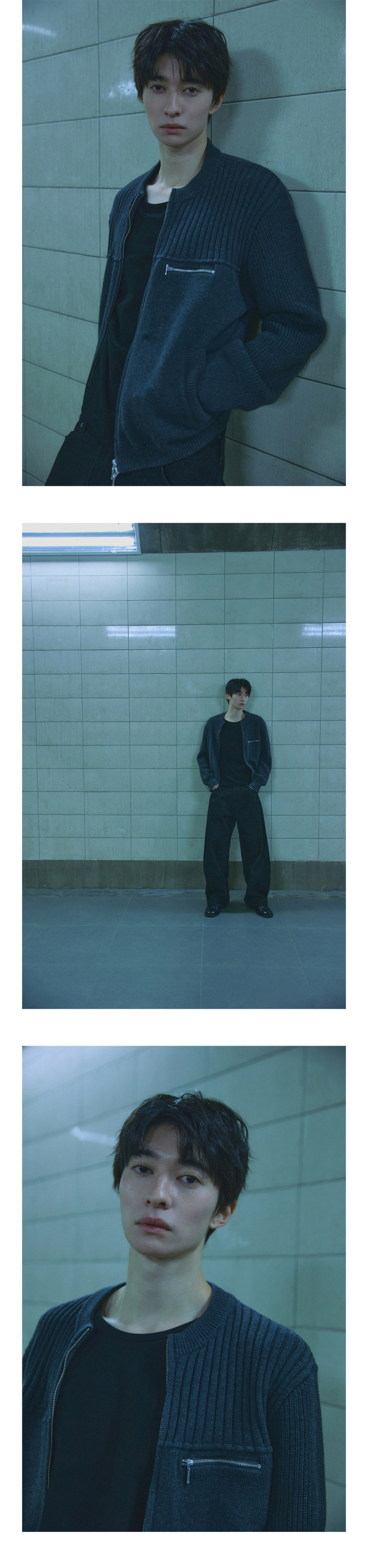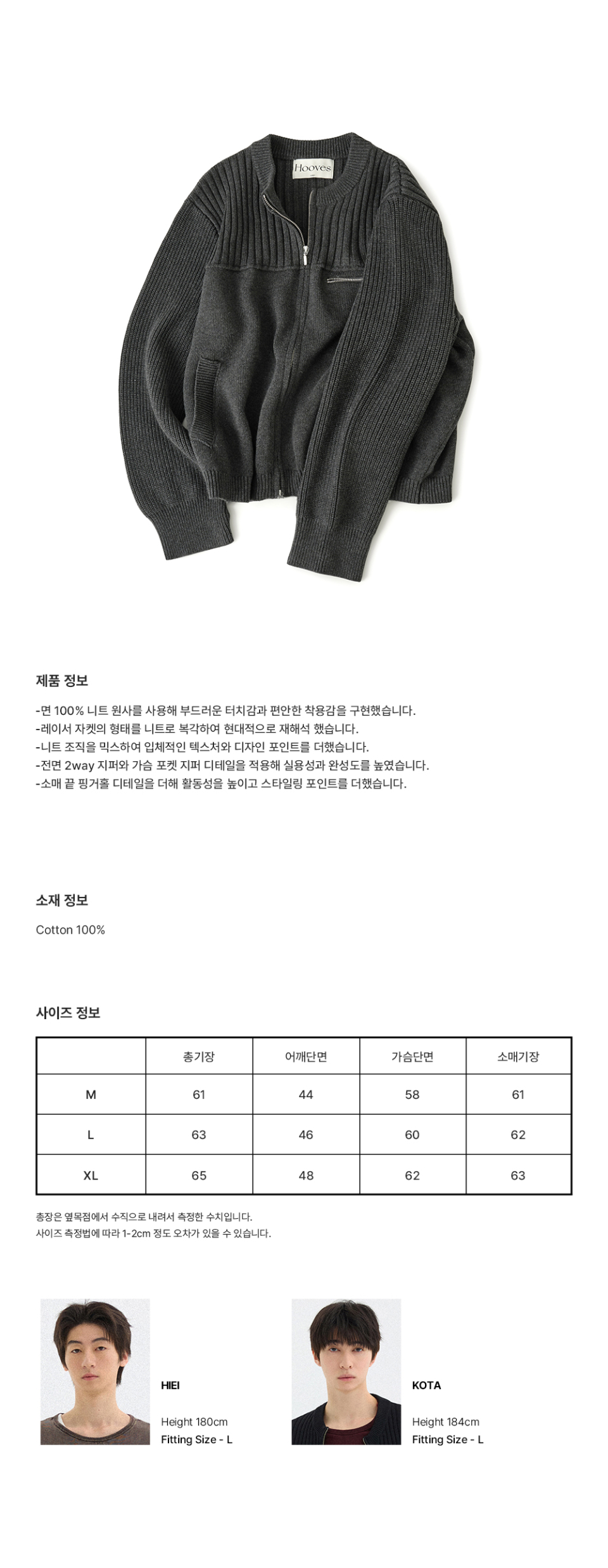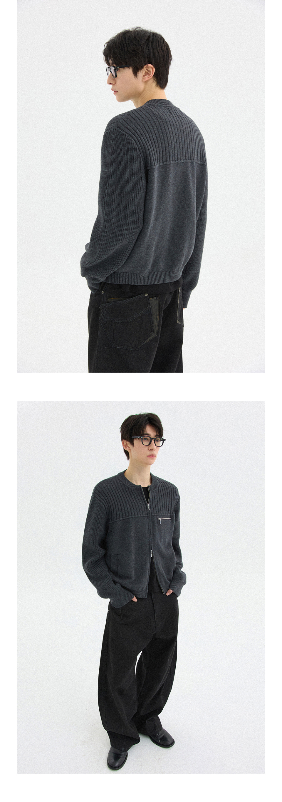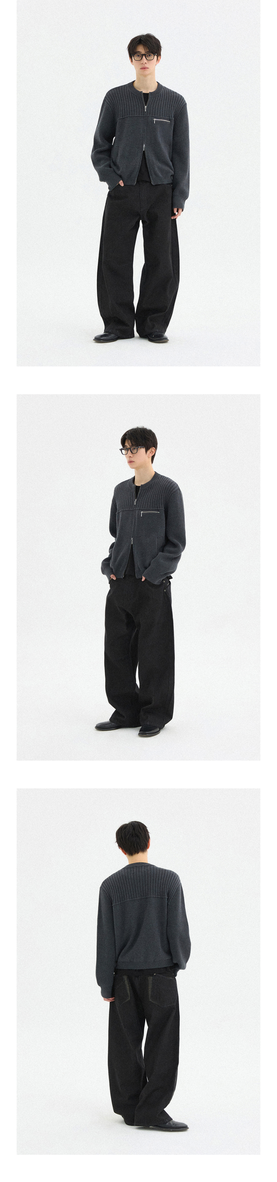 멀티 리브드 집업 니트[차콜]
