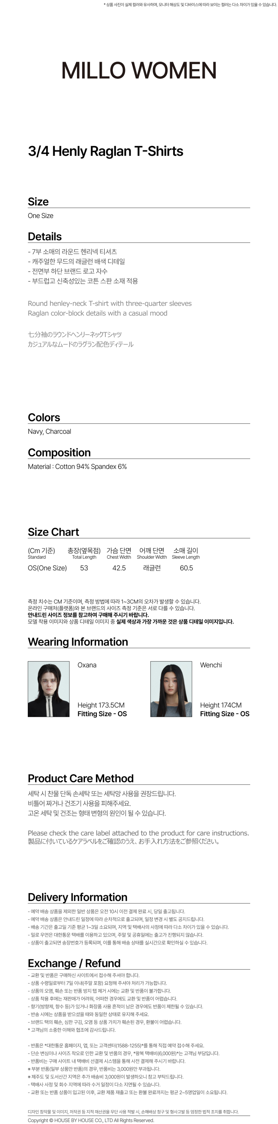 3/4 헨리 래글런 티셔츠 [네이비]