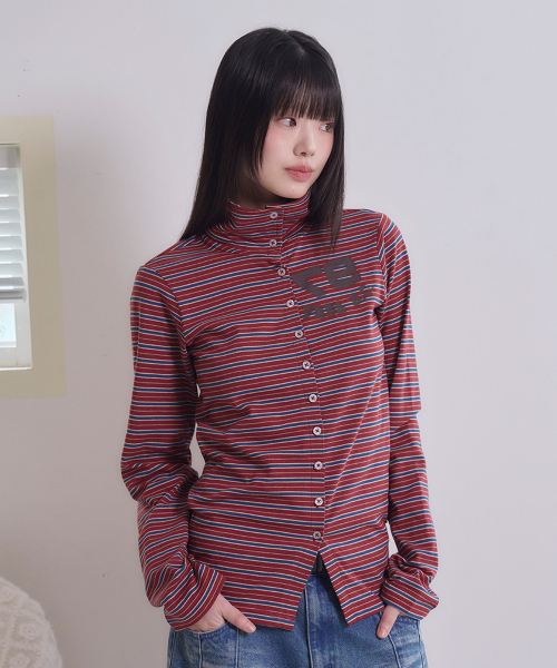 97 LOGO STRIPE HIGH NECK CARDIGAN BROWN
