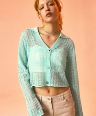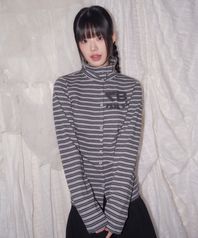 97 LOGO STRIPE HIGH NECK CARDIGAN GRAY