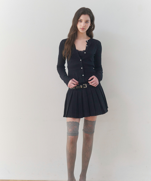 [슬림핏/레이어드세트/텍스처원단] 텍스처 슬림핏 가디건 이너 세트 (BLACK)