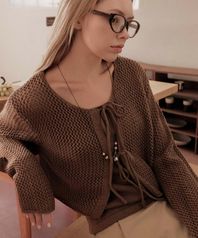 클래식 리본 자수 가디건