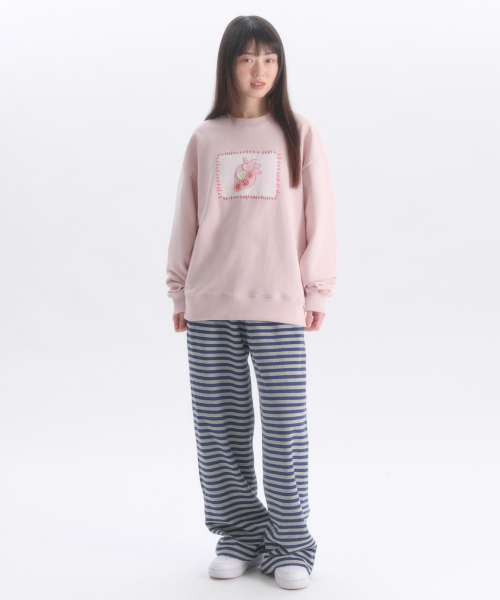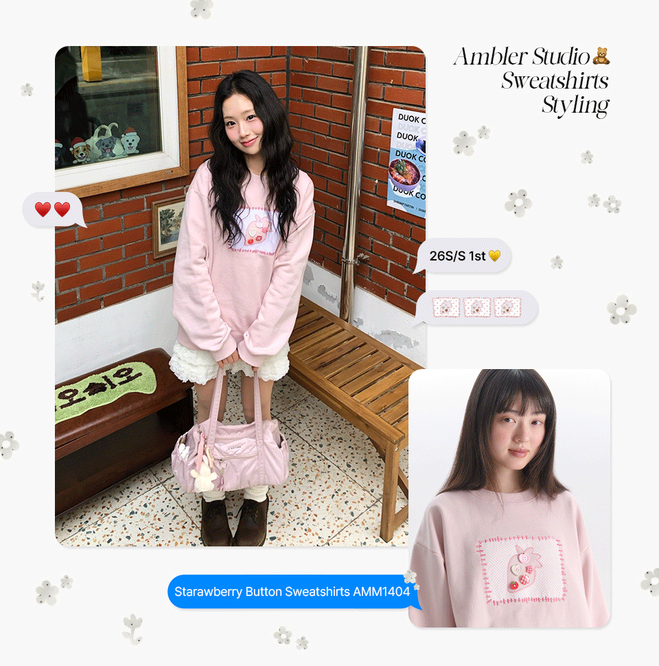 Strawberry Button 아플리케 자수 맨투맨 티셔츠 AMM1404 (핑크)