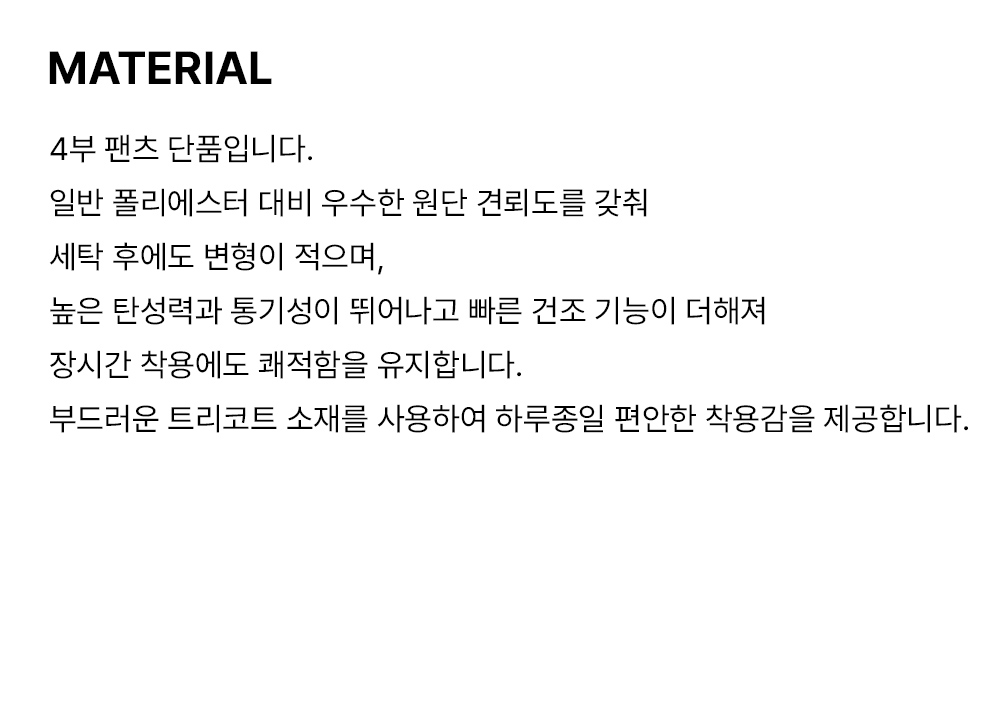 겉감:폴리에스터(78%),폴리우레탄(22%) 안감:폴리에스터(92%),폴리우레탄(8%)