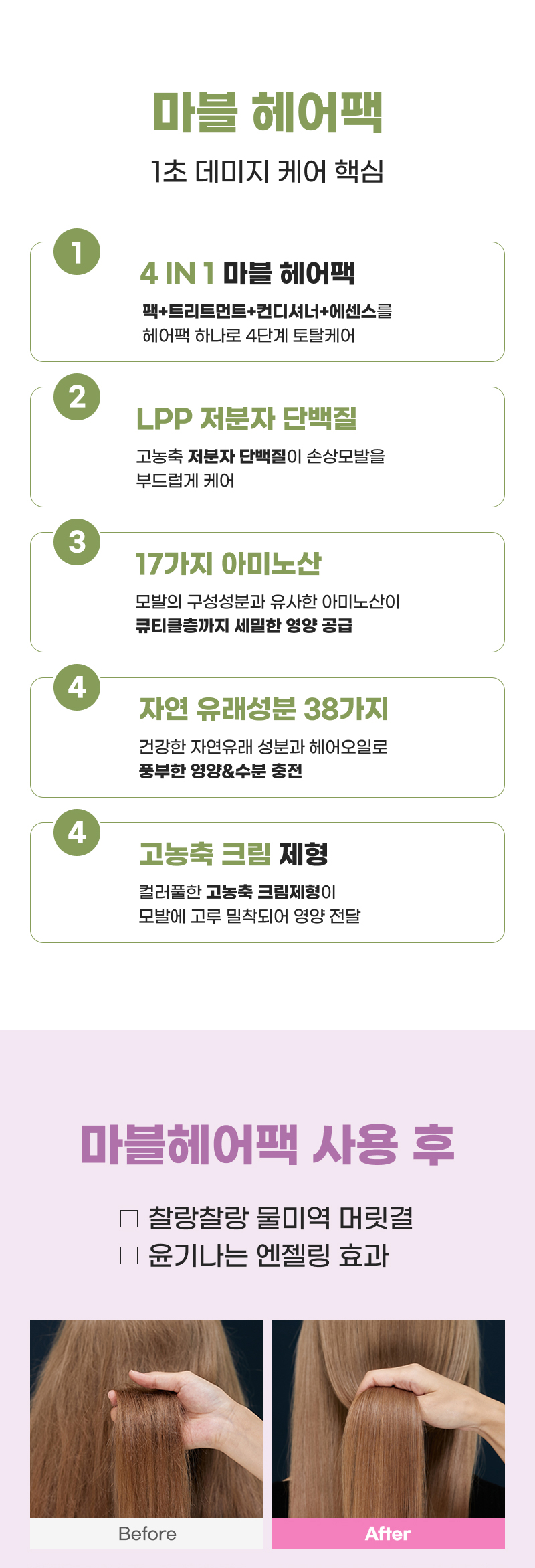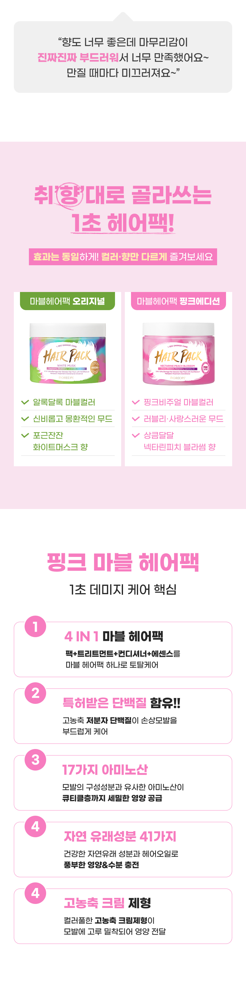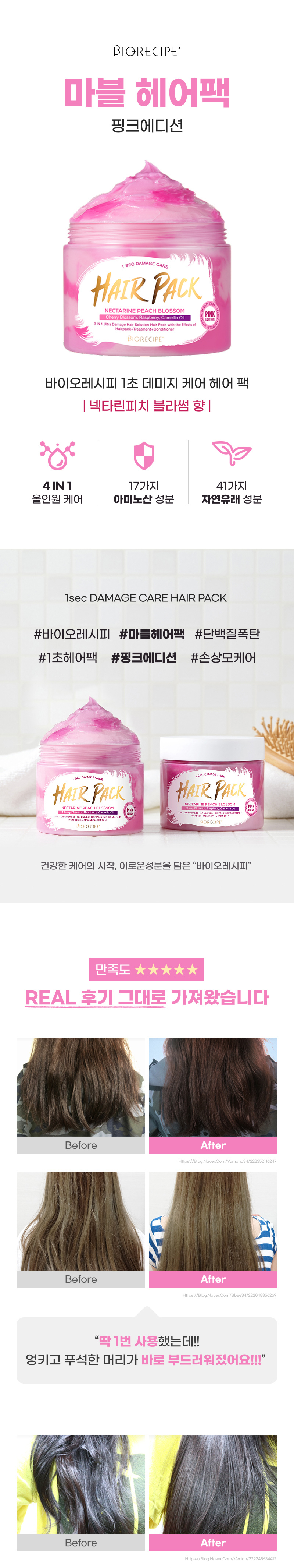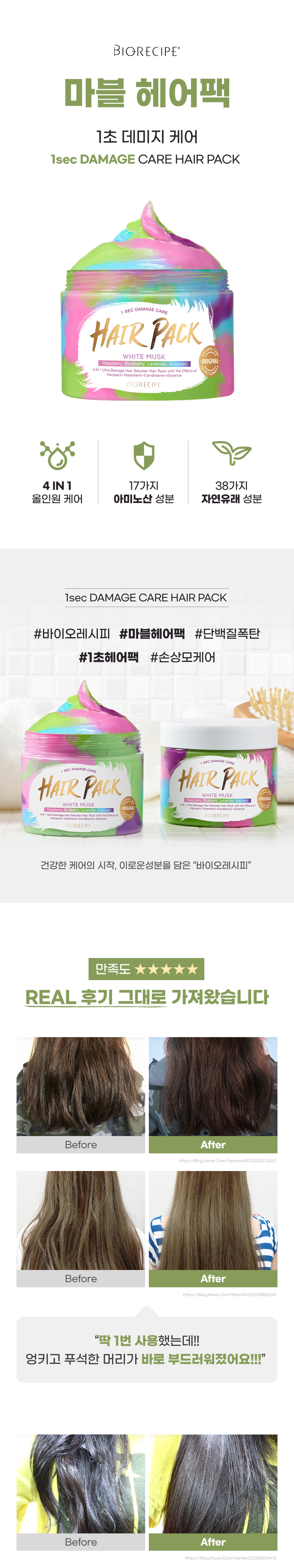 바이오레시피 1초 데미지케어 마블 헤어팩 300g/ 손상모복구 LPP 트리트먼트 단백질 헤어클리닉