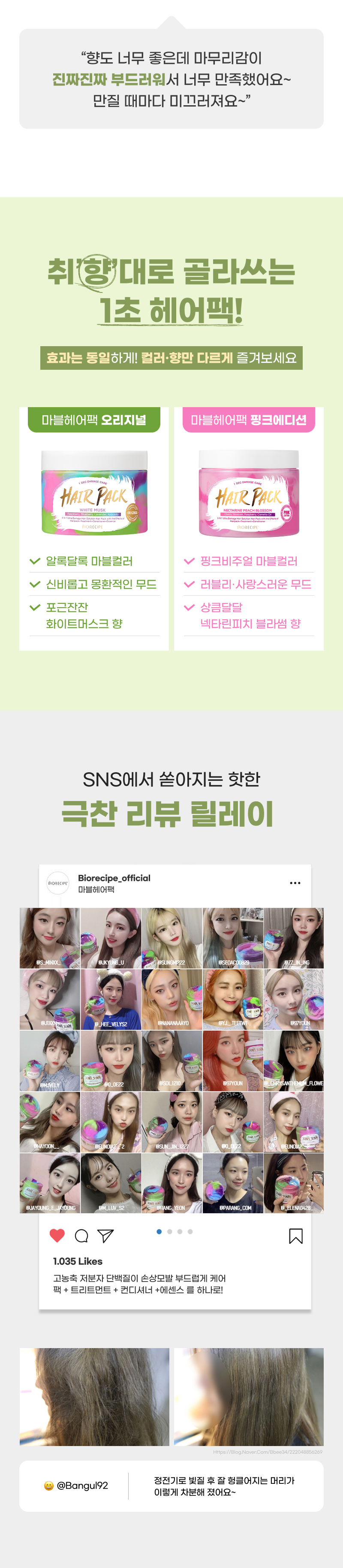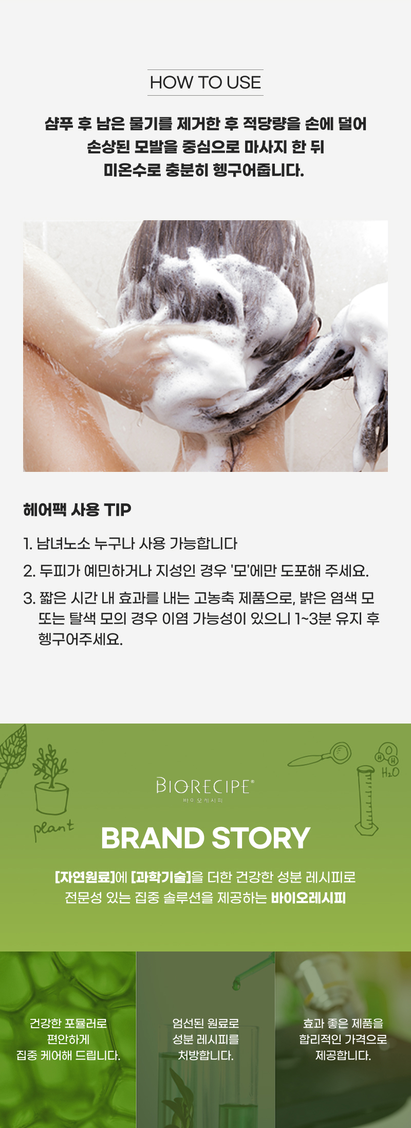 바이오레시피(BIORECIPE)는 자연 유래 성분을 바탕으로 집에서도 전문가급 헤어·스칼프 케어를 완성하도록 설계된 브랜드로 집중 영양과 손상 케어에서 사용 편의성과 즉각적인 만족감을 더해 데일리 루틴 최적화로 사용만족을 높여주는힘 간편하지만 확실한 체감 효과를 지향하는 브랜드입니다.