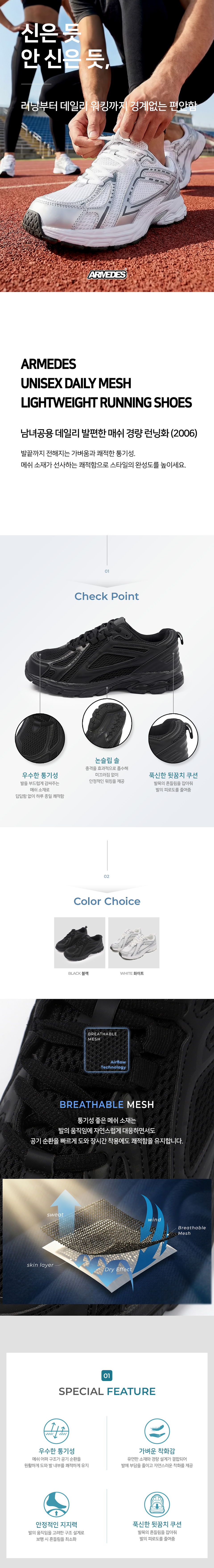 남녀공용 데일리 발편한 매쉬 런닝화 AR-2006