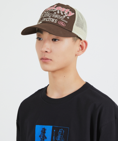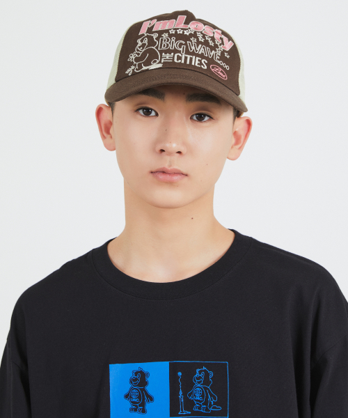 LOSTY BEAR MESH TRUCKER CAP brown