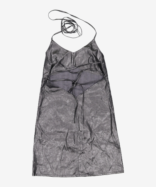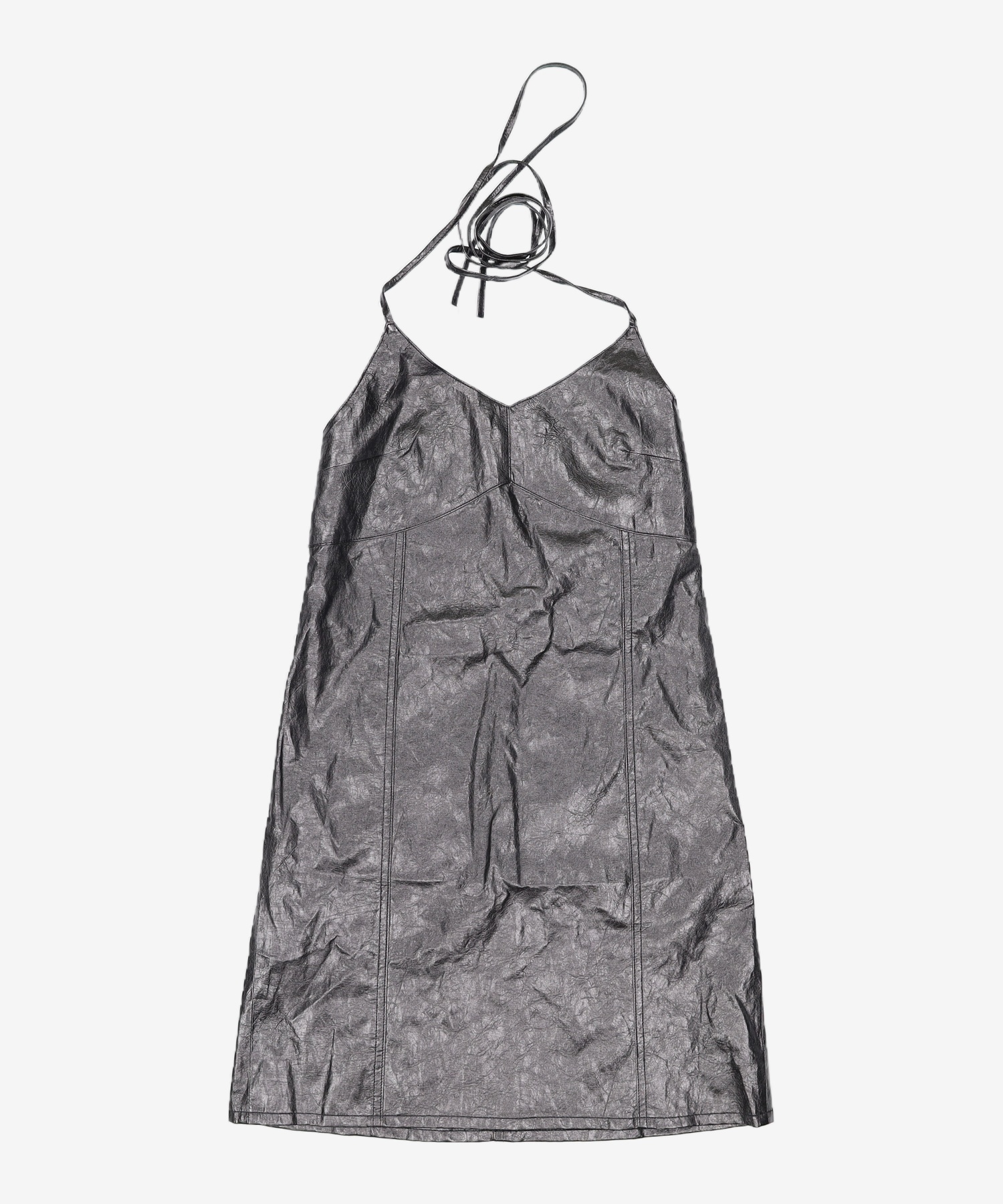 페이크 레더 백 스트랩 뷔스티에 드레스 (블랙) FREE