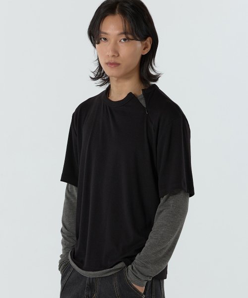 [온플릭xDNSR] 레이어드 보트넥 롱슬리브 차콜