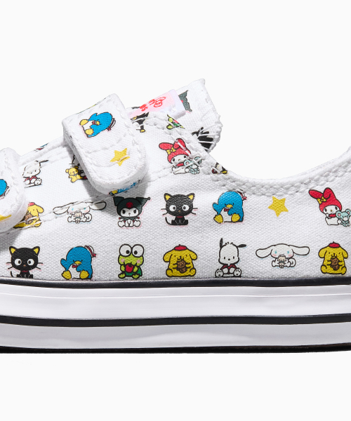 컨버스와 산리오캐릭터즈는 잊지 못할 순간을 만들어가는 즐거움을 이야기합니다. 별 장식이 포인트로 더해진 프린팅으로 일상에 기분 좋은 설렘을 느껴보세요.