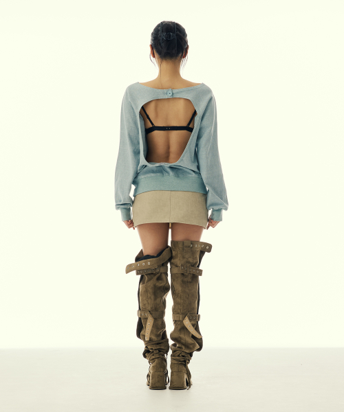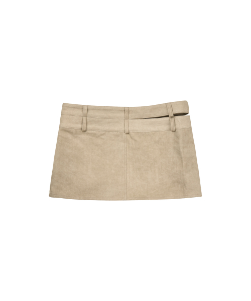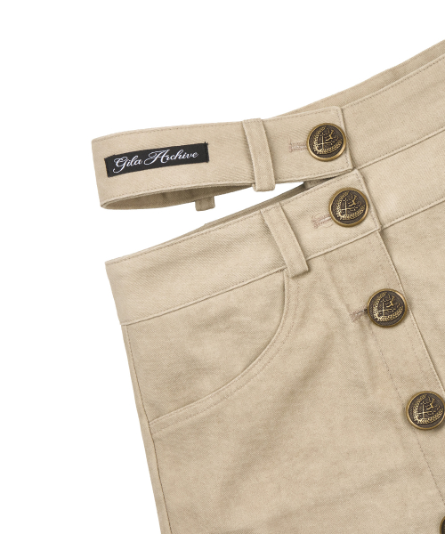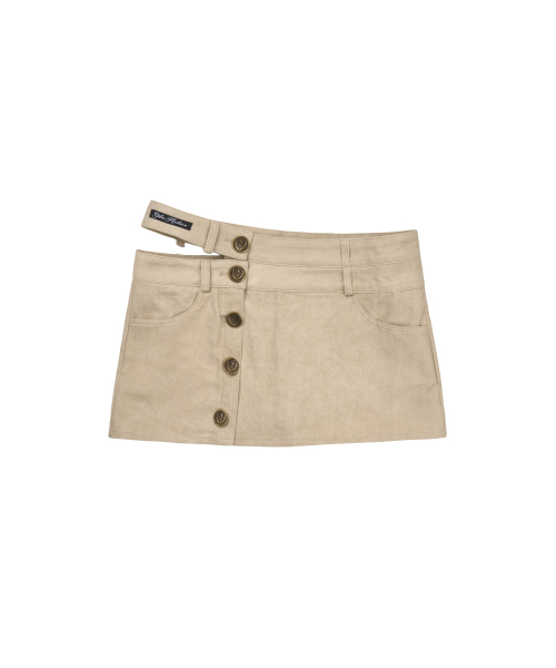 CUT OUT DOUBLE WAIST BUTTON SKIRTS_BEIGE