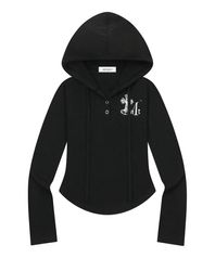 사하라 호피 십자가 슬림핏 스냅 버튼 굴림 후드 티 (2컬러)