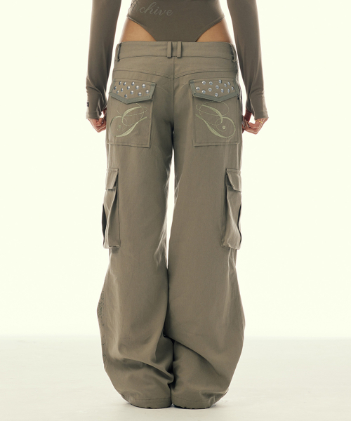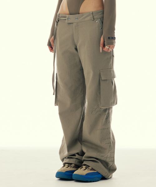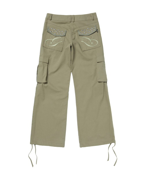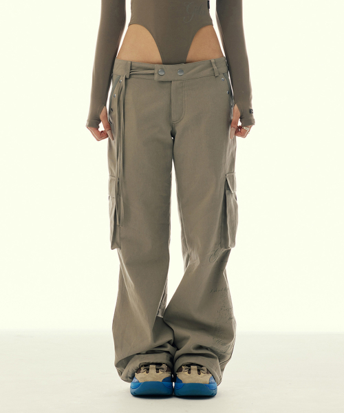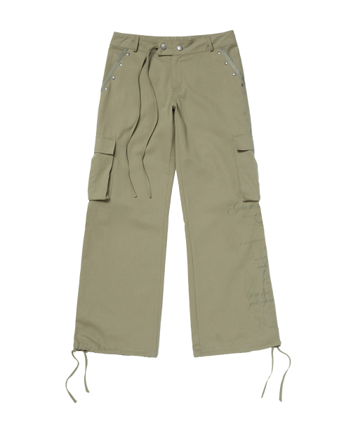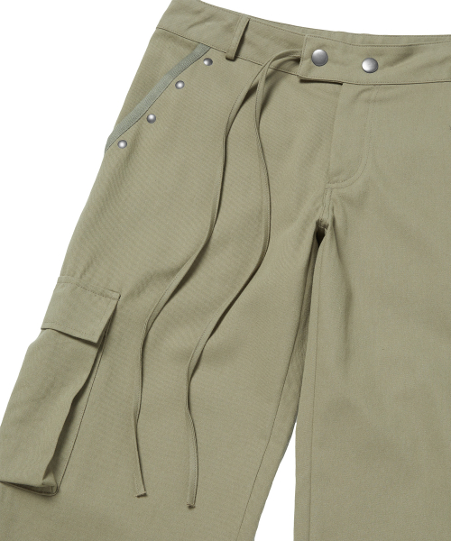 POCKET EMBROIDED STRING CARGO PANTS_BEIGE
