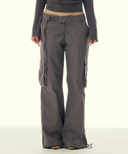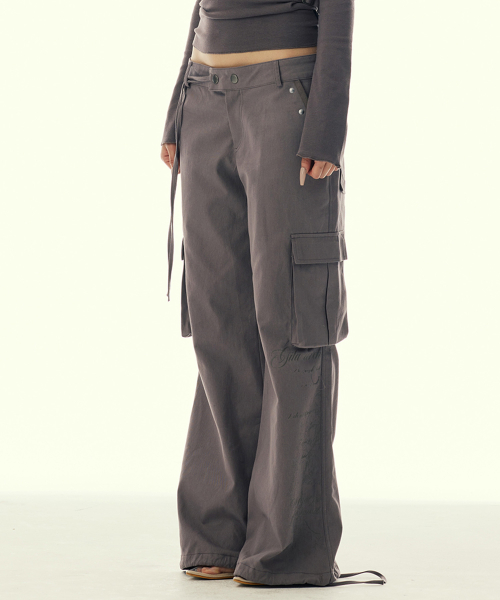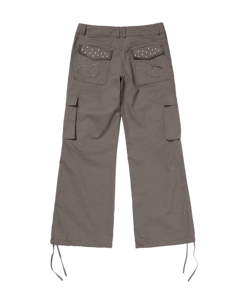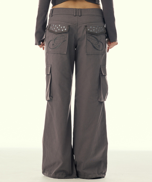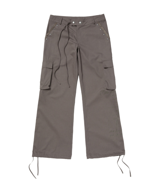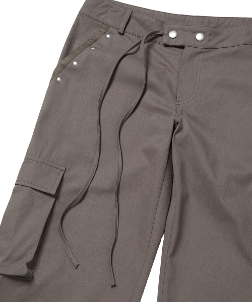 POCKET EMBROIDED STRING CARGO PANTS_BROWN