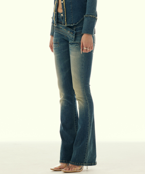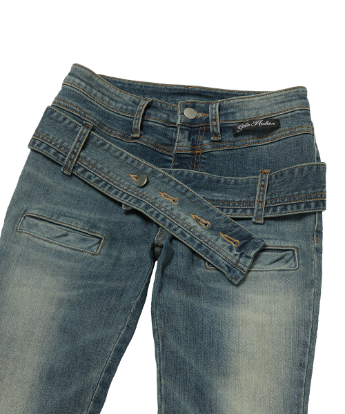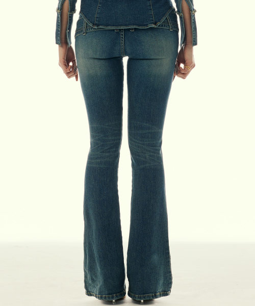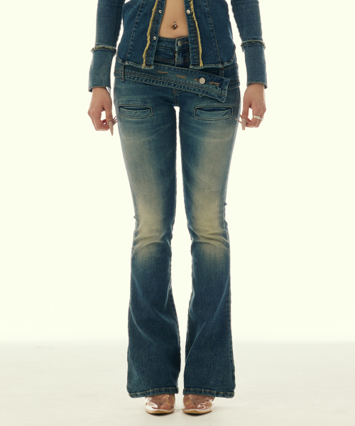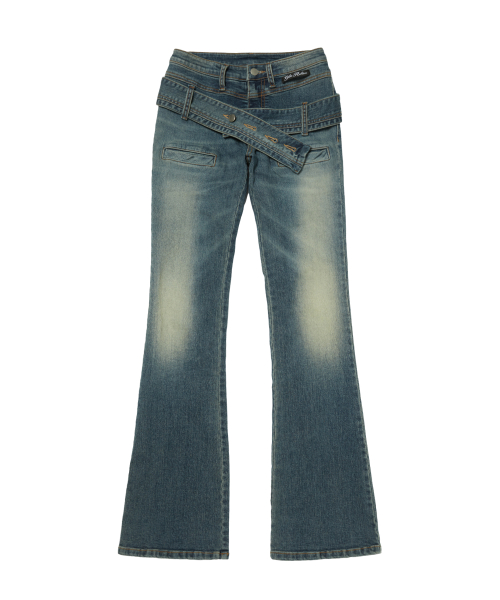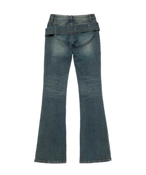 TWIST BELT BOOTCUT DENIM PANTS_BLUE
