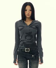5-BUTTON GRAPHIC THIN HOODED_CHARCOAL