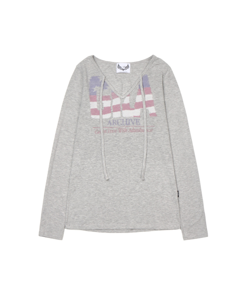 USA LOGO V NECK LONG SLEEVE_BLACK