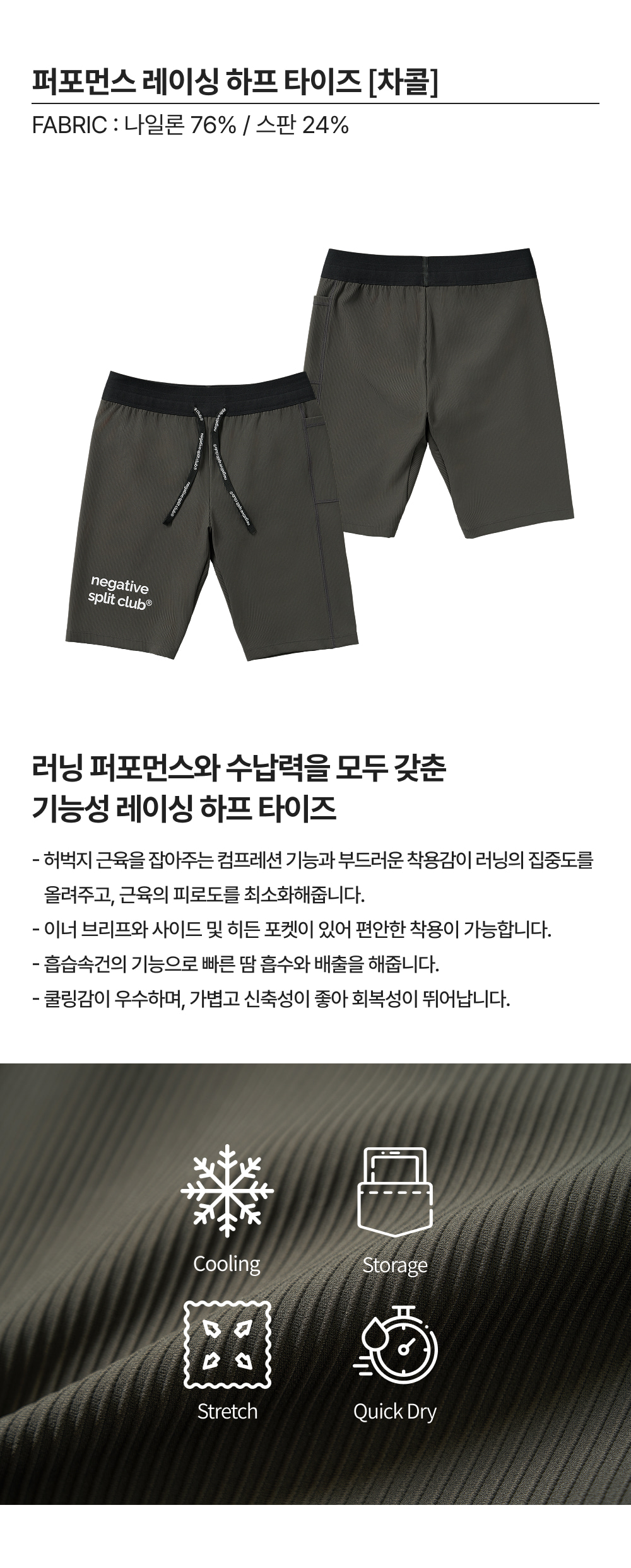 퍼포먼스 레이싱 하프 타이즈 (차콜)