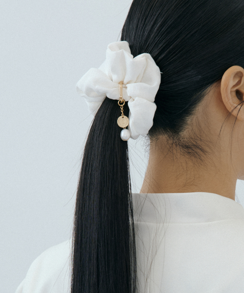 Scrunchie + Detachable Pearl Charm Set (ivory)