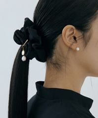 Scrunchie + Detachable Pearl Charm Set (black)
