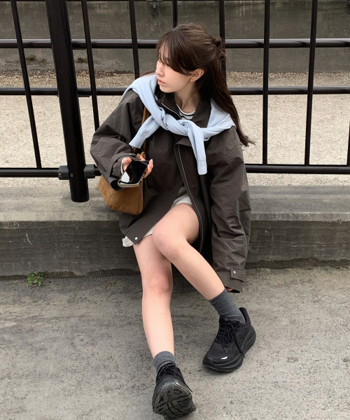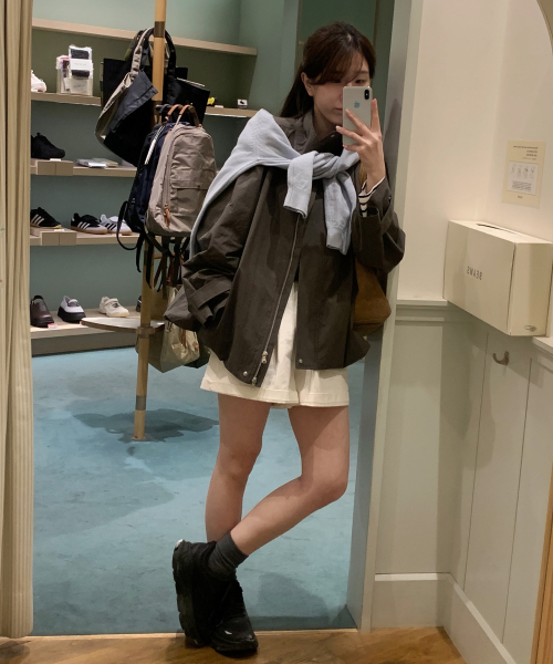 (woman) 하이넥 뮤트 하프 자켓_Khaki