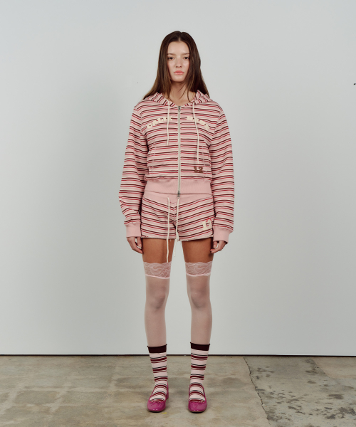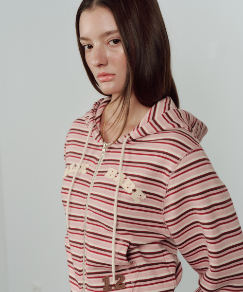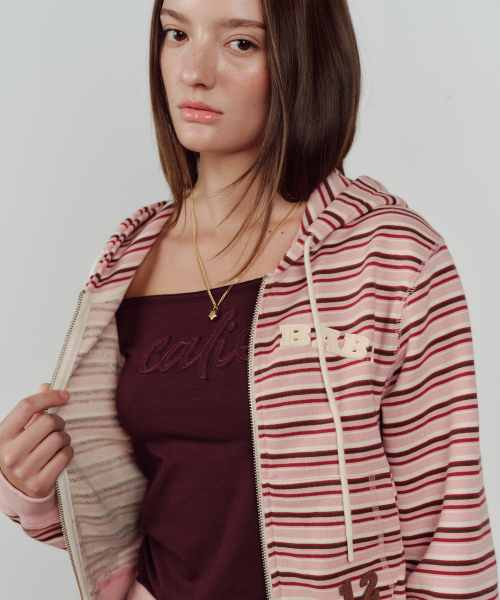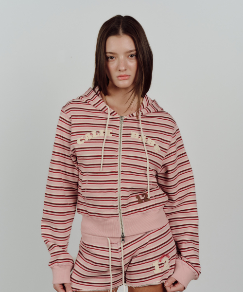 CALIE BABE STRIPE HOOD ZIP UP PINK