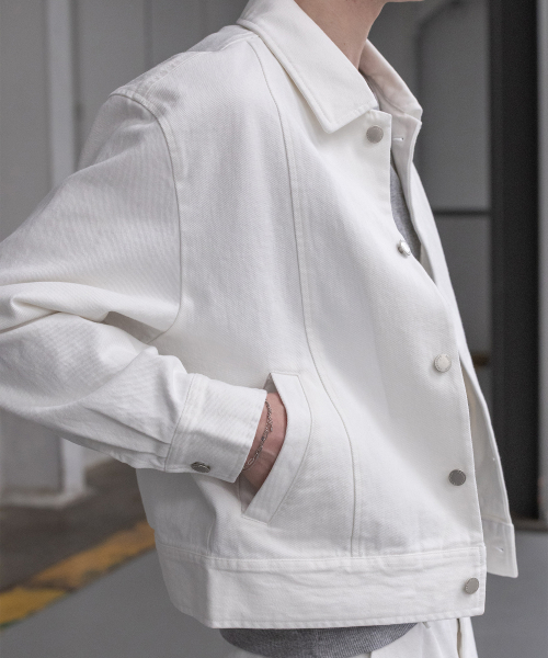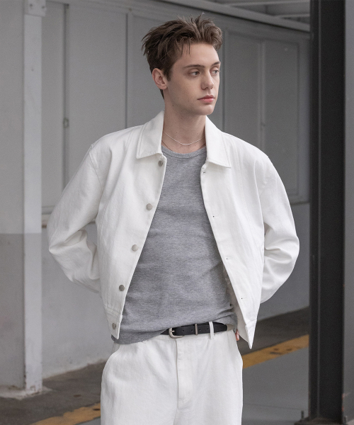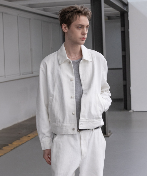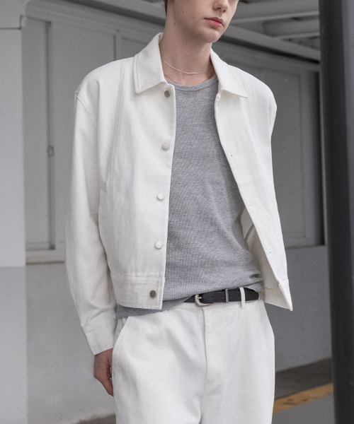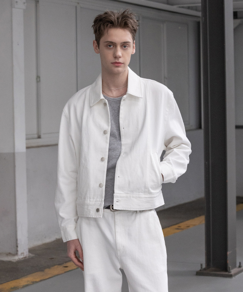 트윌 코튼 세미 크롭 자켓 [화이트]
